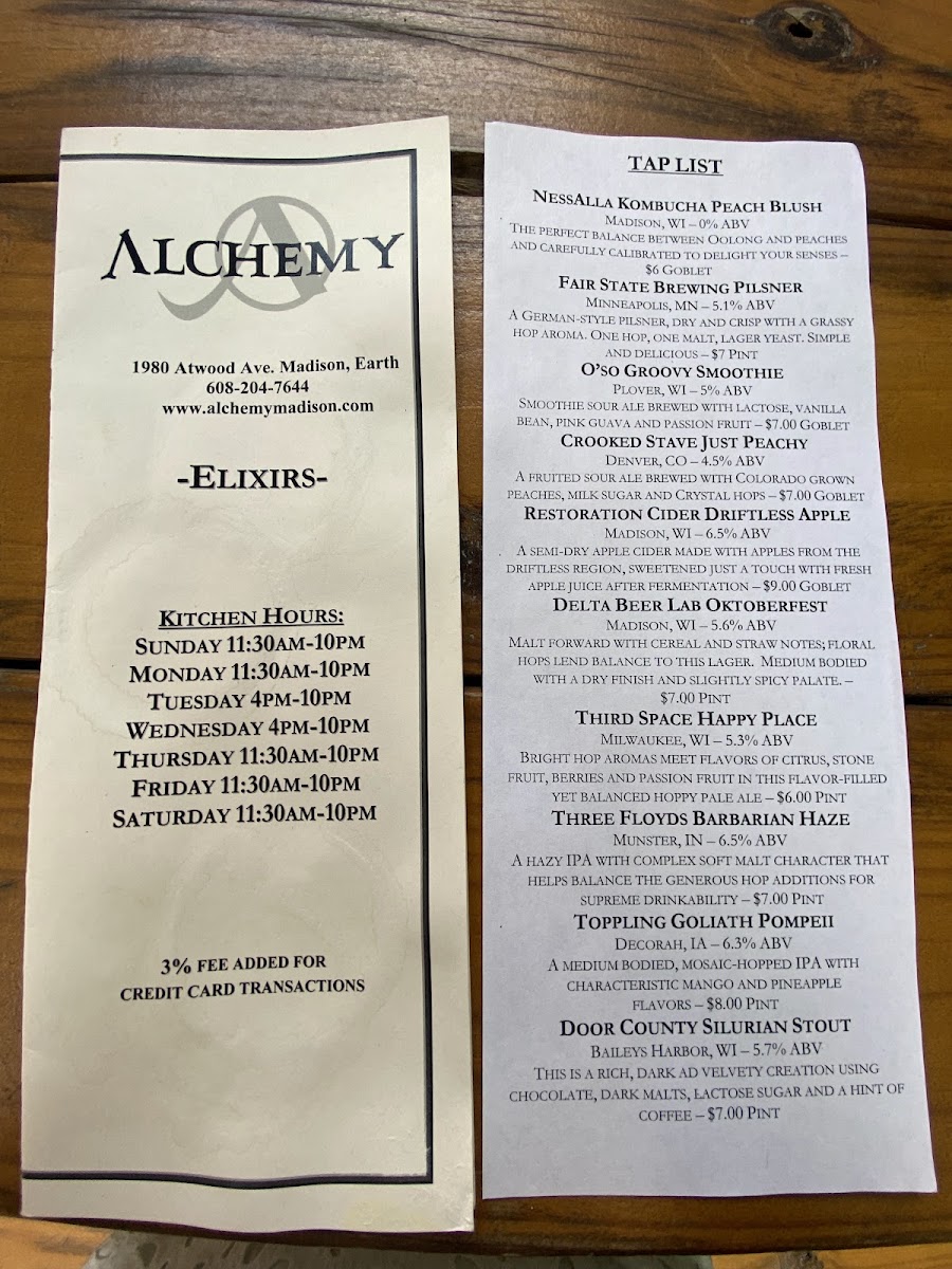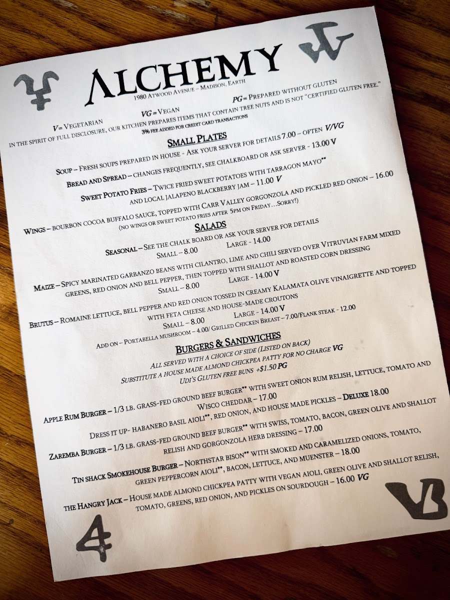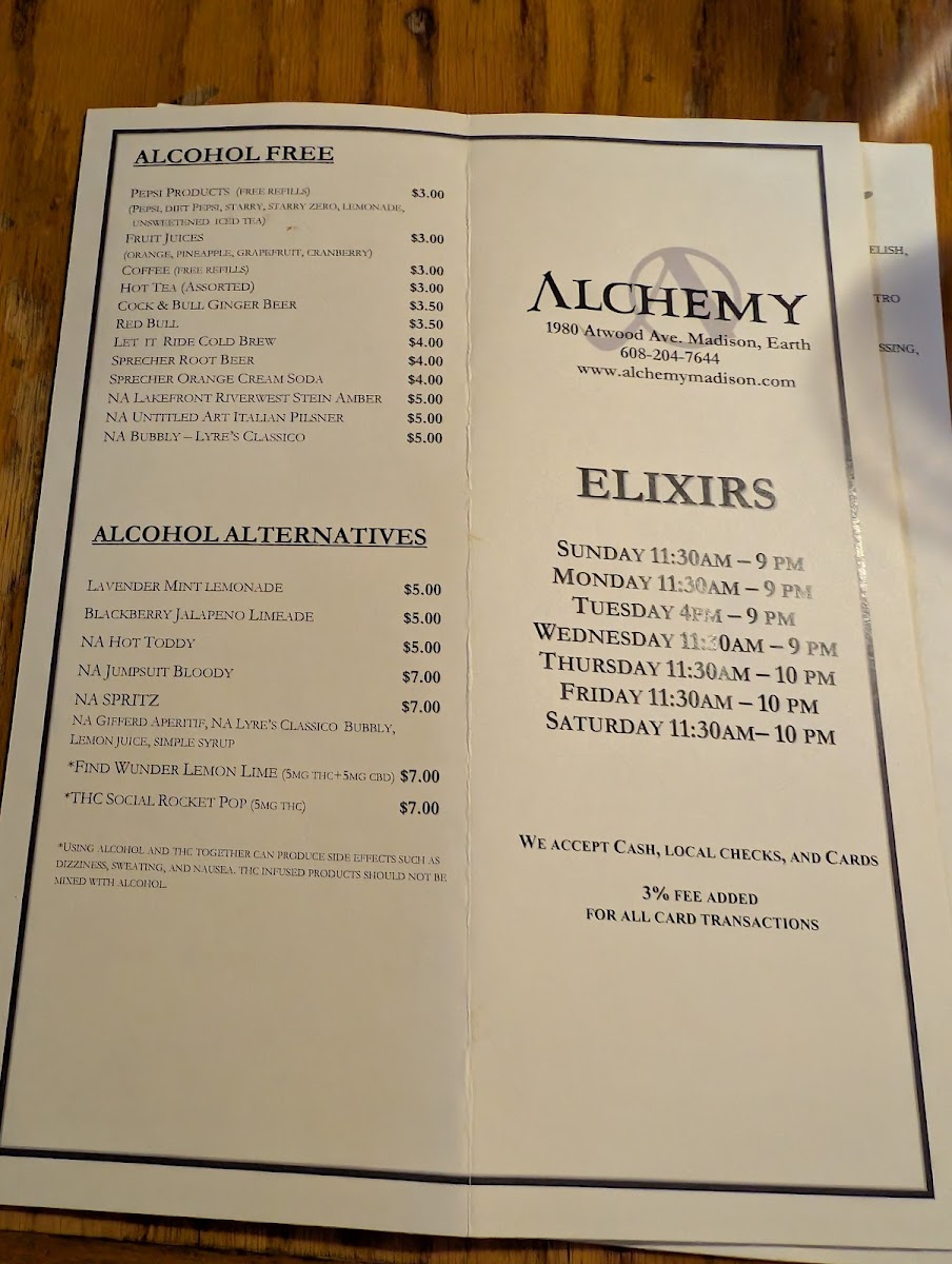 The Alchemy Cafe Menu offers a delightful mix of flavors and dishes that cater to every taste. Whether you're in the mood for a quick bite or a leisurely meal, there's something for everyone at this cozy spot in Madison. Start your day with their signature breakfast options, featuring freshly brewed coffee paired with delicious pastries. For lunch or dinner, you can enjoy a variety of sandwiches, hearty salads, and mouth-watering entrees, all crafted with local ingredients that highlight the best of the season.
